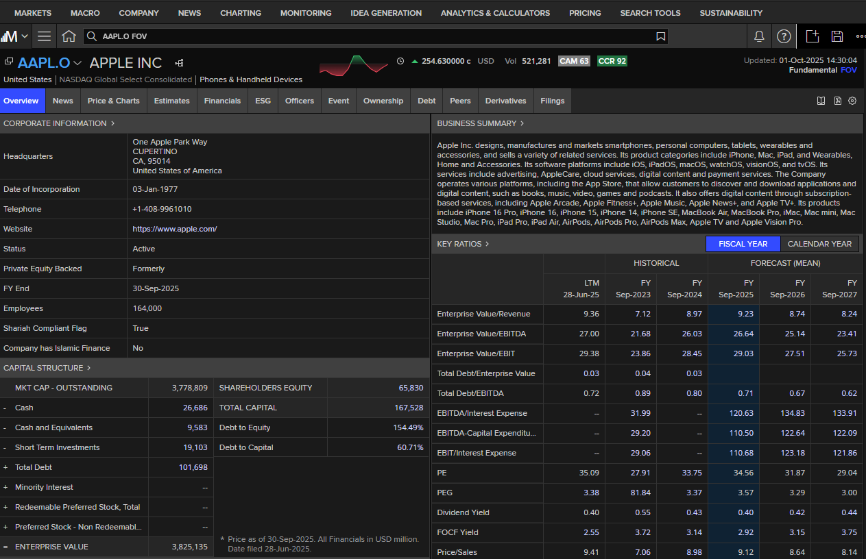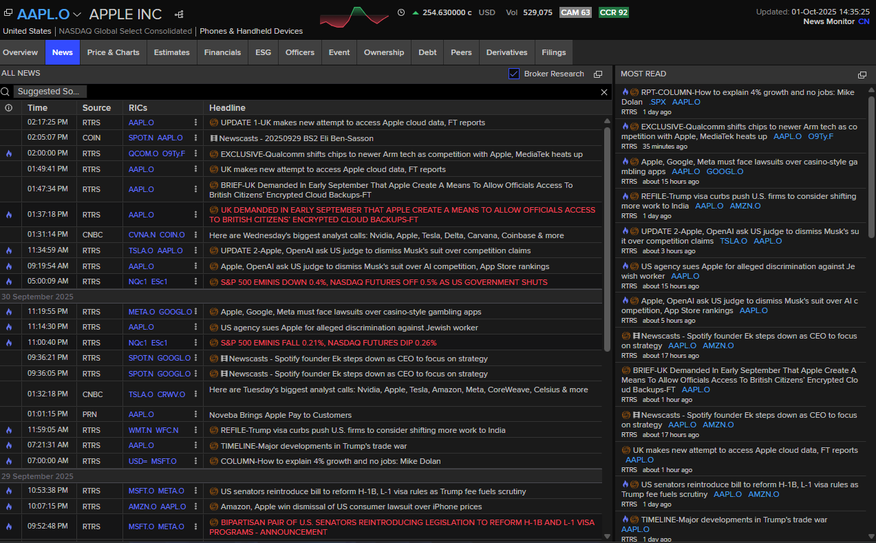 Broadly speaking, it allows users to view market data, company fundamentals and institutional-grade newswires.