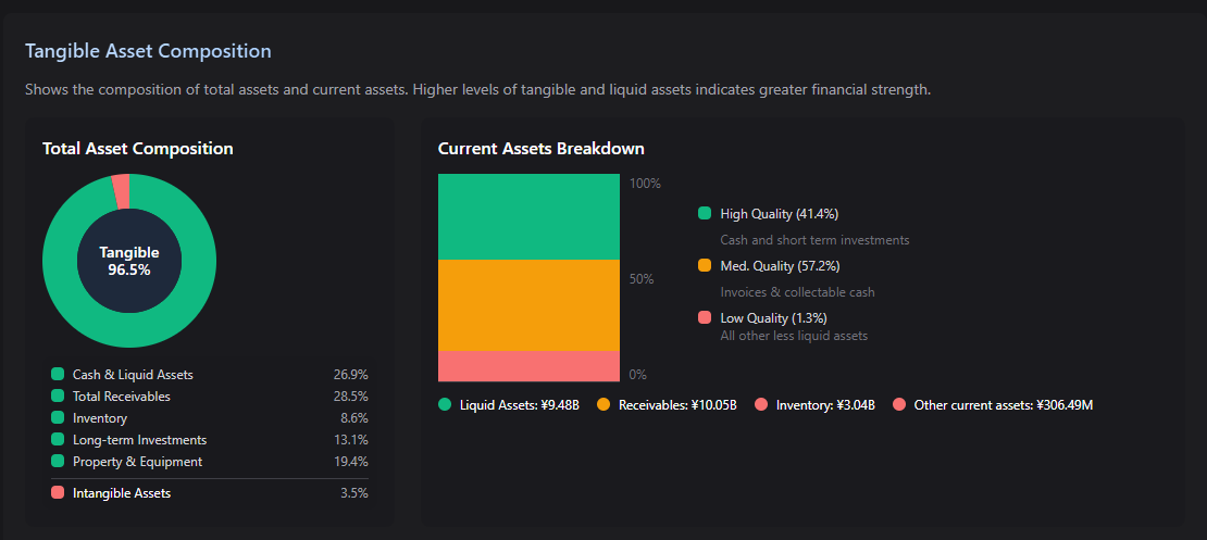 The company holds ¥11.25B in highly liquid cash and securities (Cash ¥2.27B + Securities ¥5.83B + Investment Securities ¥3.15B).