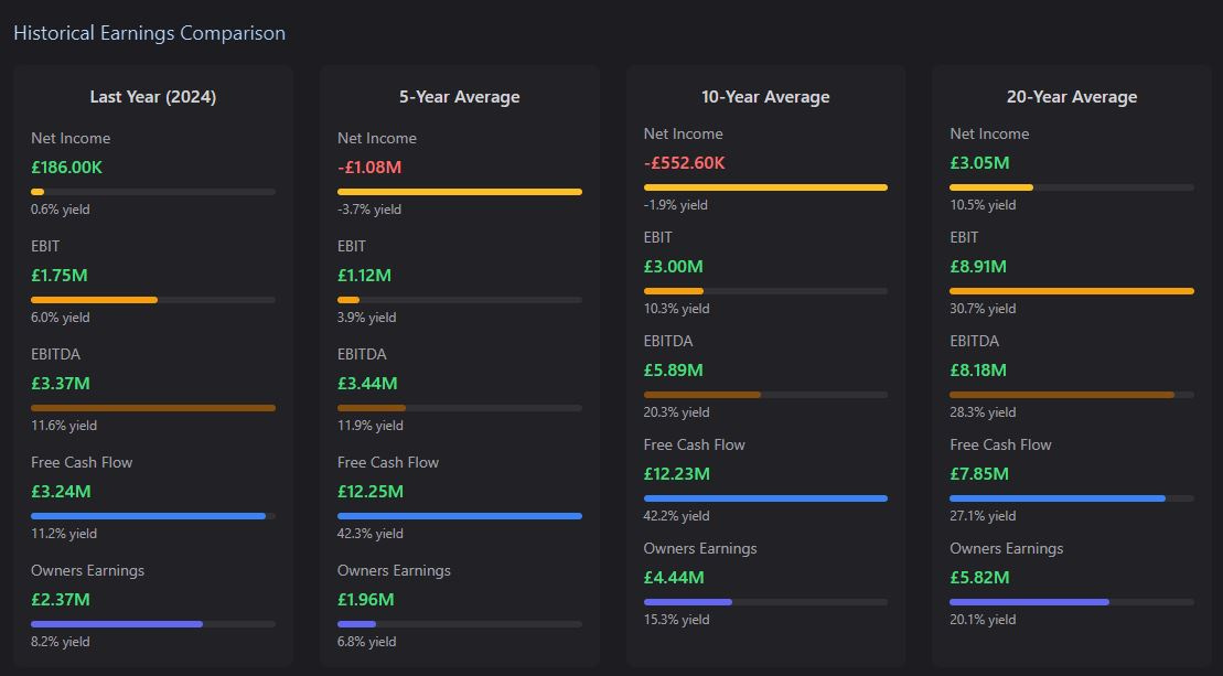 But the 20 year average FCF figure is still almost £8m, with a single year FCF figure of £9m in 2023.