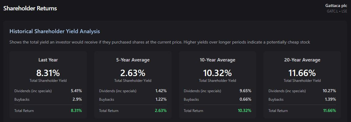 In fact, based on todays market cap, the average shareholder yield is currently 8.31%. The 20 year average is 11.66%.