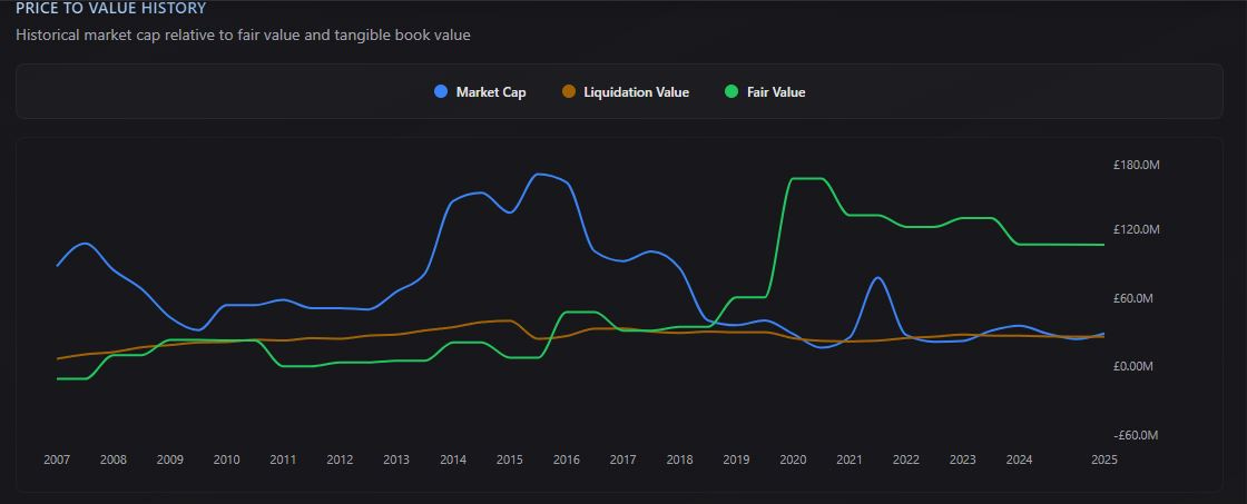 A large chunk of the assets are also cash and liquid assets, which also compares very nicely to the market cap (£29m).