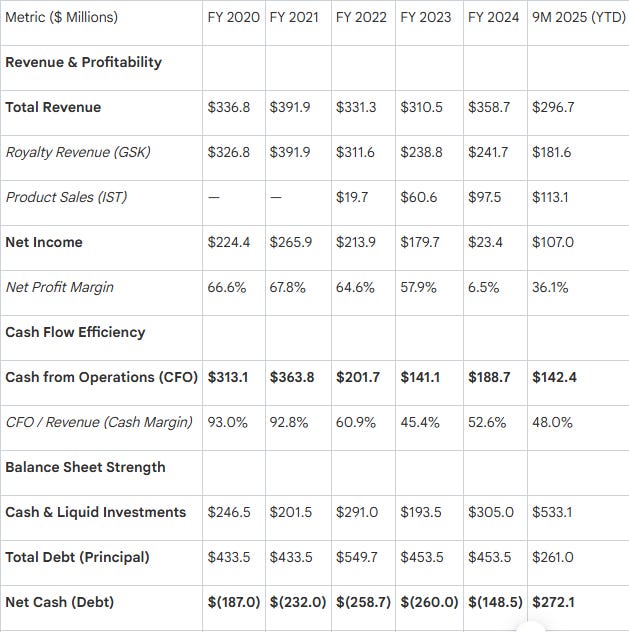 In 2021, you’ll notice a massive ‘buyback’. This was simply Innoviva buying out the GSK stake, and not really anything to do with returning capital to owners.
