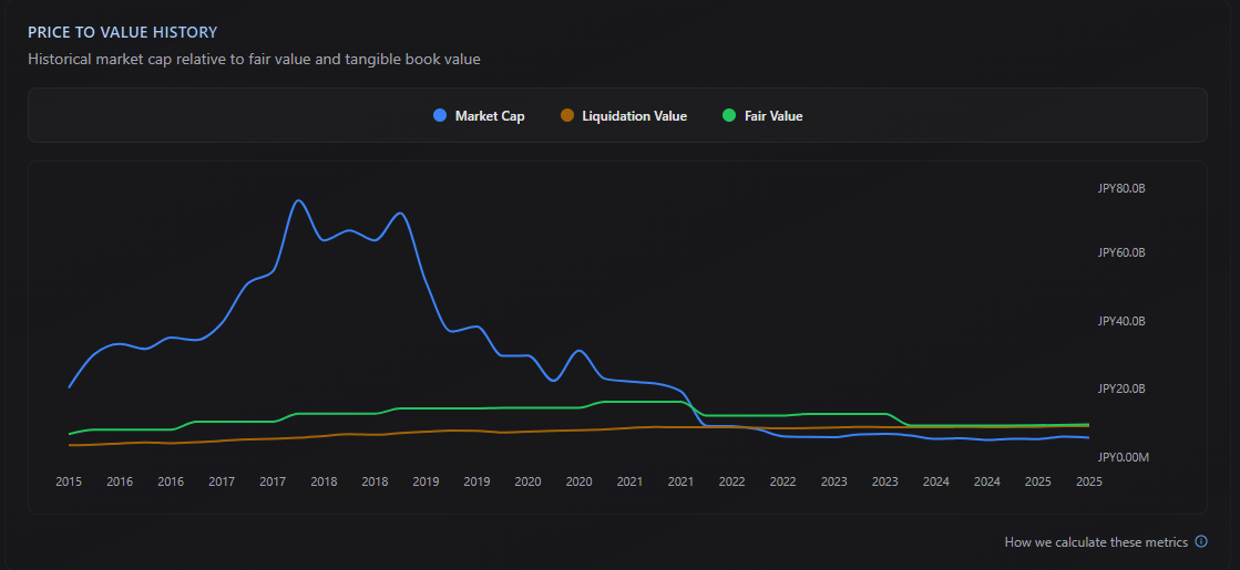 One of the first things that drew my attention was the fact that it has, historically, always traded above both fair value and liquidation value.