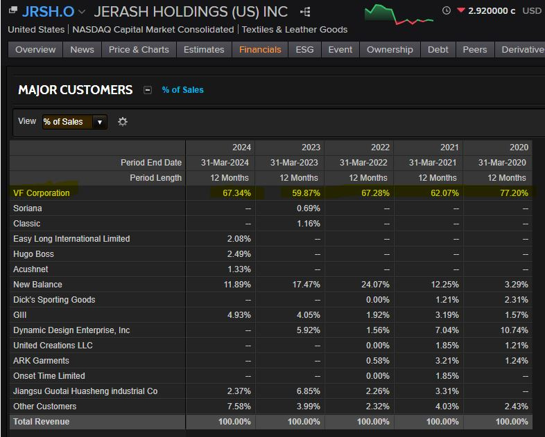 Its largest client (VF corporation) was experiencing issues of its own and revenues from this single client represented around 60% of its total.
