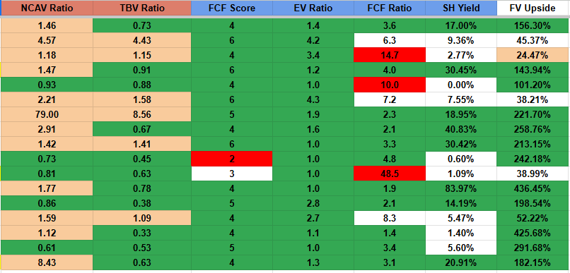 Finding stocks with a very low NCAV ratio is actually quite difficult, by the time you’ve weeded out all the cash-burning freaks shows.