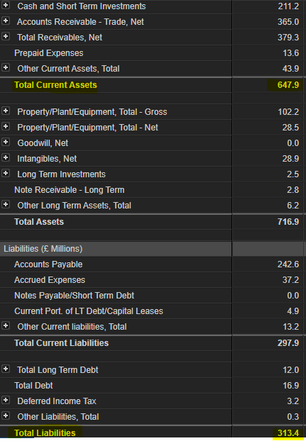 One of these businesses had a market cap of just over £200mn but their total current assets totalled almost £650mn.