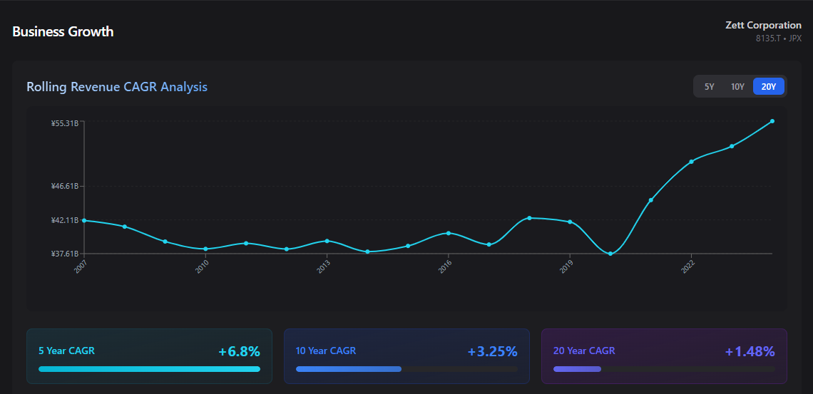 Zett is a high-volume, low-margin wholesaler. Revenues go up but margins always stay thin.